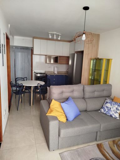 Dependências: (2) dormitórios: sendo (1) banheiro; cozinha; área de serviço; (1) sala;. O que tem Perto: Açougue, Escola 1º Grau, Escola 2º Grau, Farmácia, Feiras, Lanchonete, Lojas, Mercado, Panificadora, Ponto de circular, Pré-escola, Pizzaria, Sorveteria, Pet Shop, . Observações: Lançamento de apartamento em Condomínio Padrão entrega em Dezembro 2021. - Área Privativa: 2 dormitórios, Cozinha, Sacada, Lavanderia, Aceita PET. - Área de Lazer: Academia, Churrasqueira, Playground, Salão de festas, Espaço gourmet. - Infra Estrutura: Água Individualizada, Condomínio fechado, Elevador, Energia elétrica, Gás encanado, Guarita, Portão eletrônico, Recepção, Rede de telefone, Rua asfaltada, Sacada, Sistema de incêndio, TV a cabo, Vaga coberta, Vaga demarcada. .